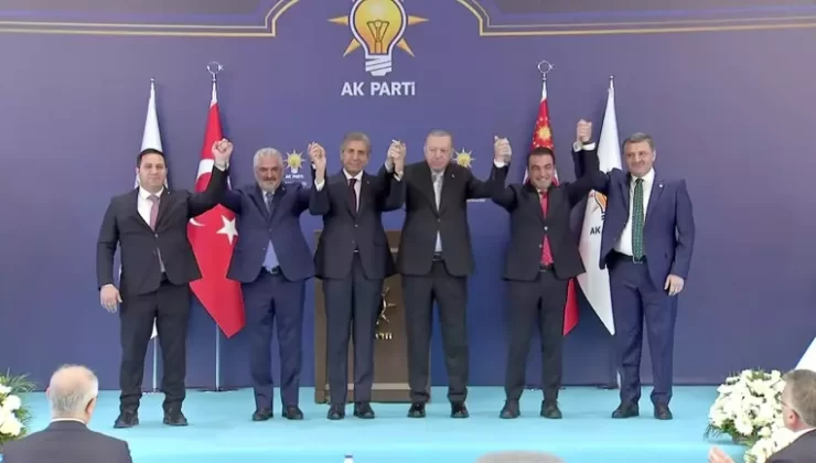 Toplantıda ayrıca 7 belediye başkanı AK Parti’ye katıldı ve rozetlerini Cumhurbaşkanı Erdoğan taktı. Katılan isimler şunlar: