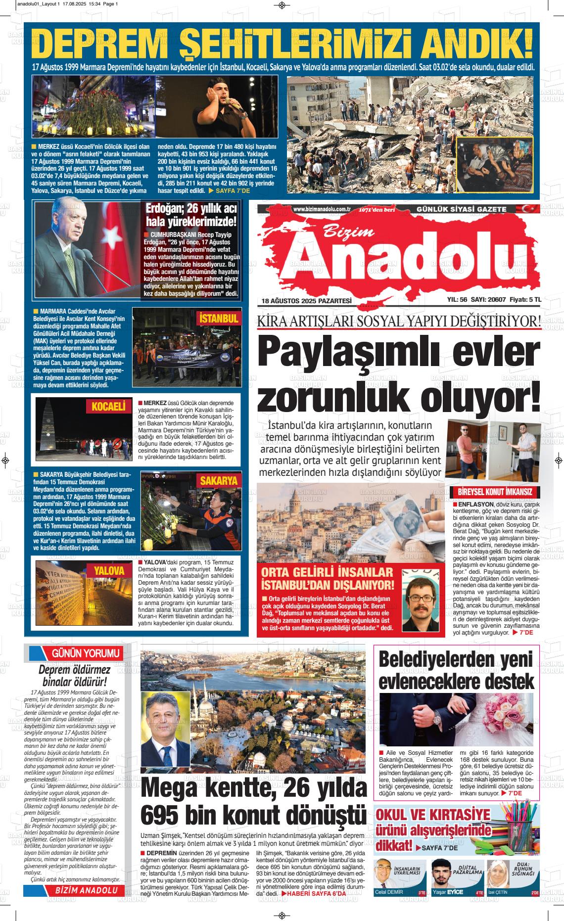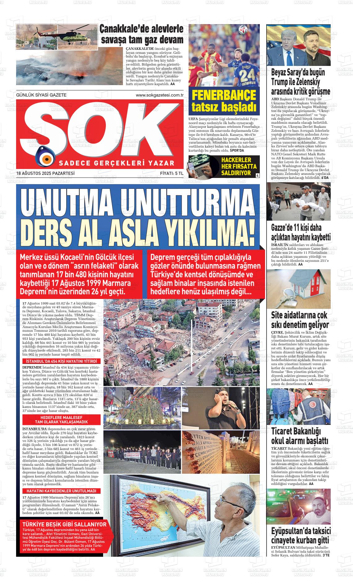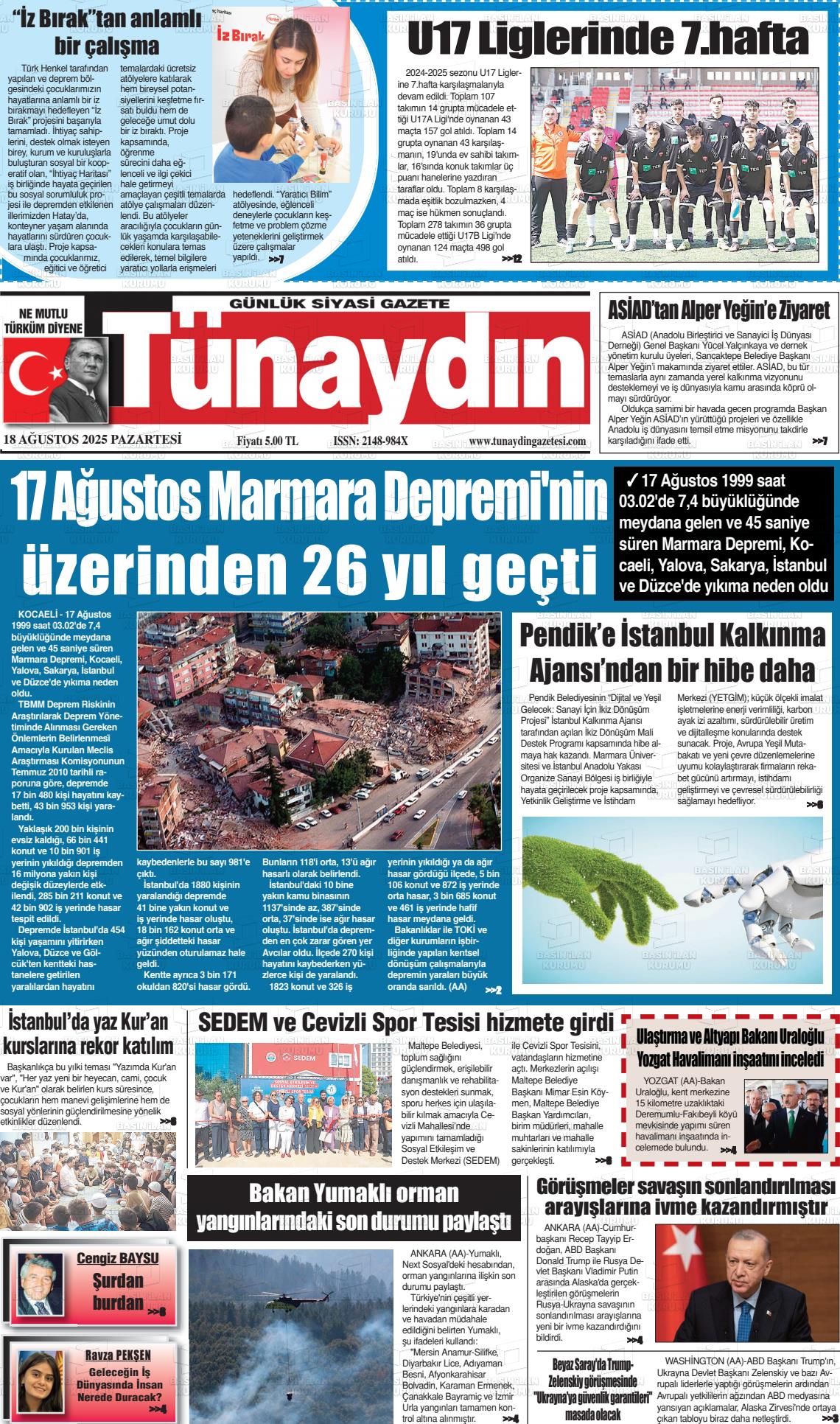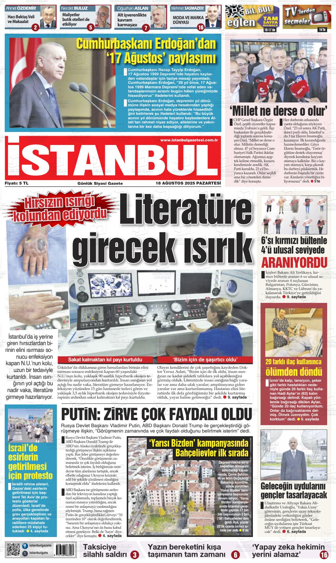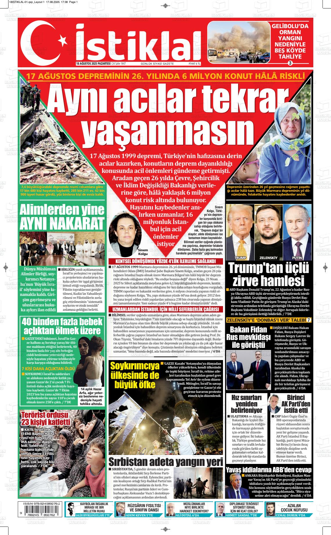 İstanbul Yerel Gazeteleri 26 Ekim 2025, Pazar Günü Manşeti