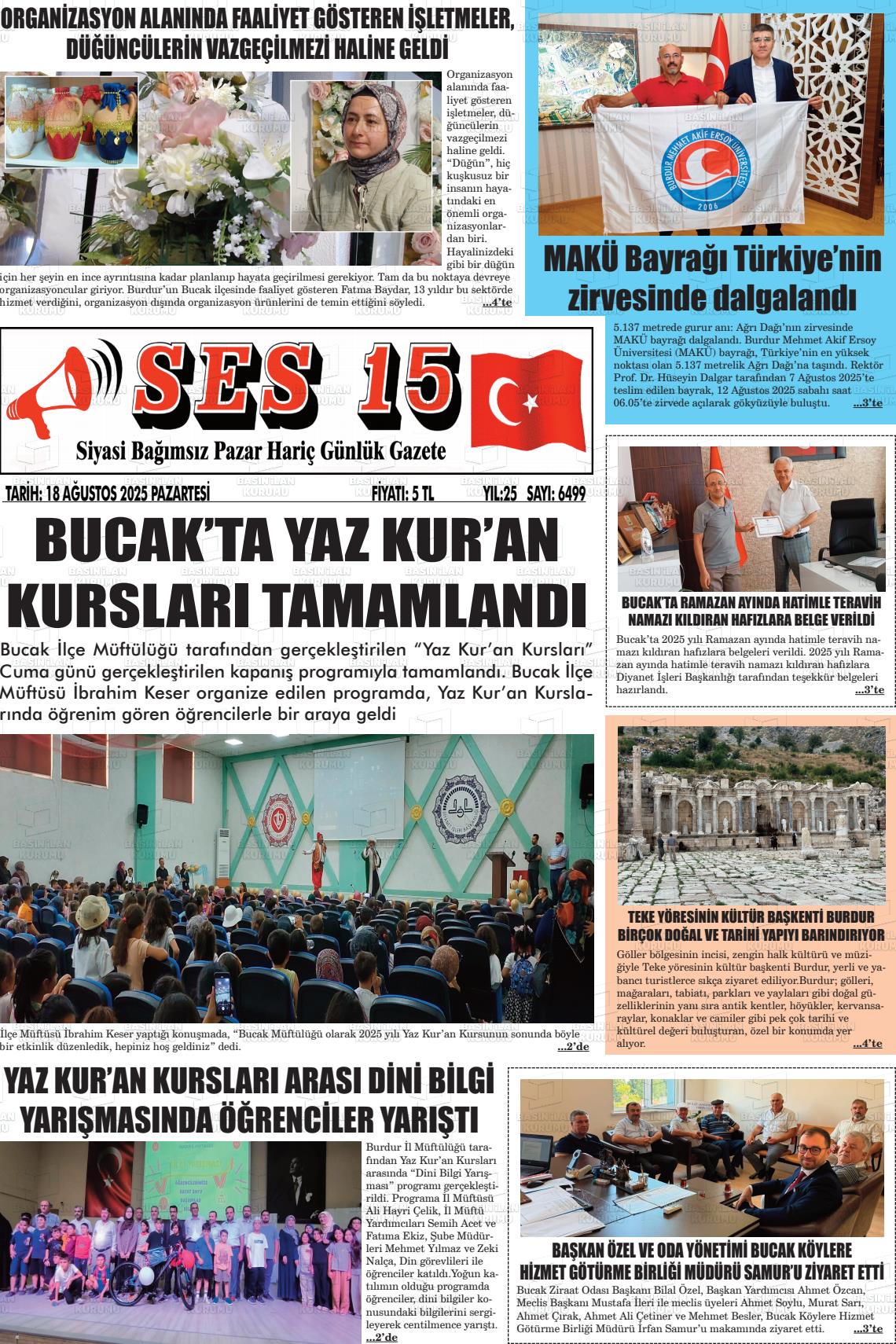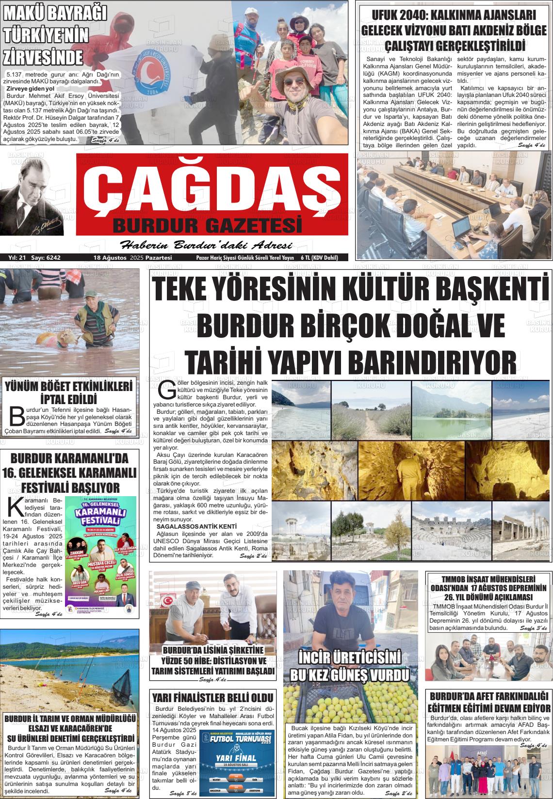 Burdur Yerel Gazeteleri 14 Aralık 2025, Pazar Günü Manşeti