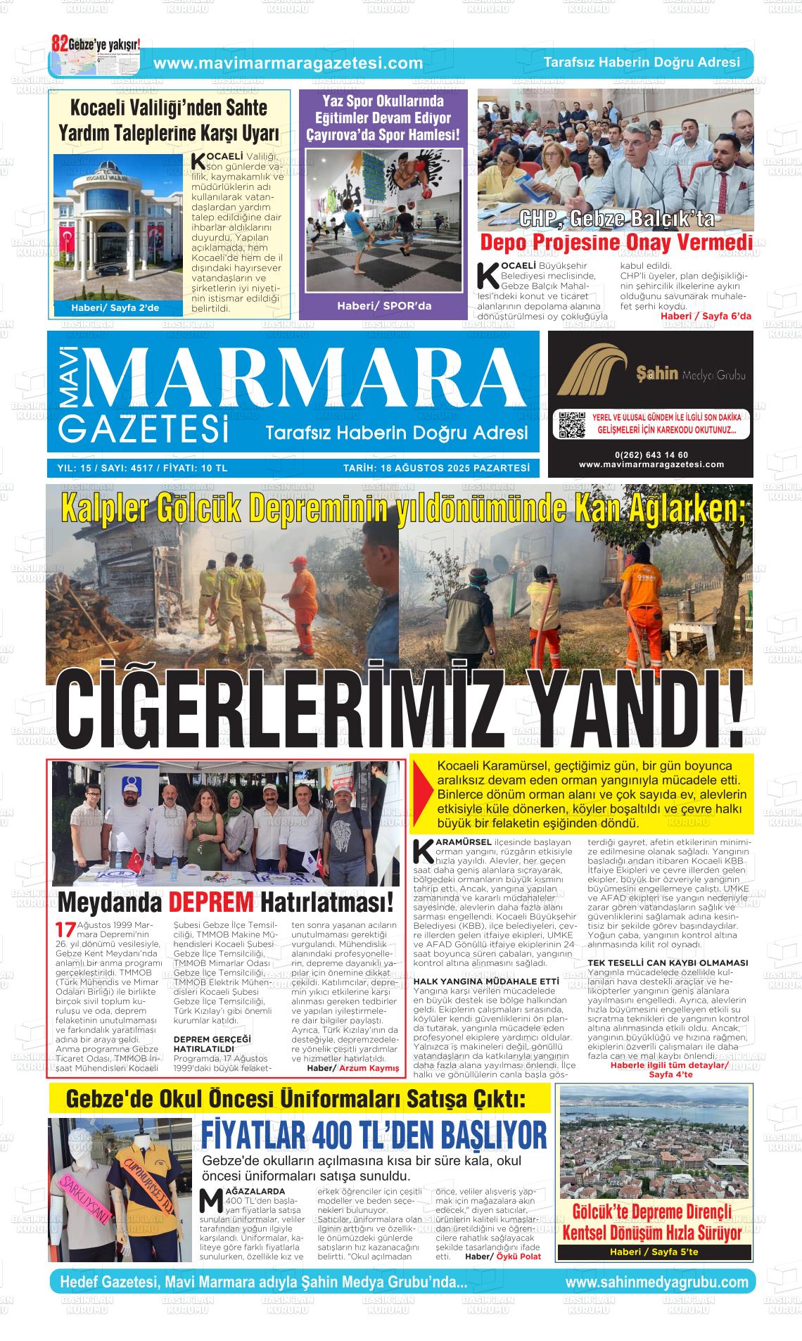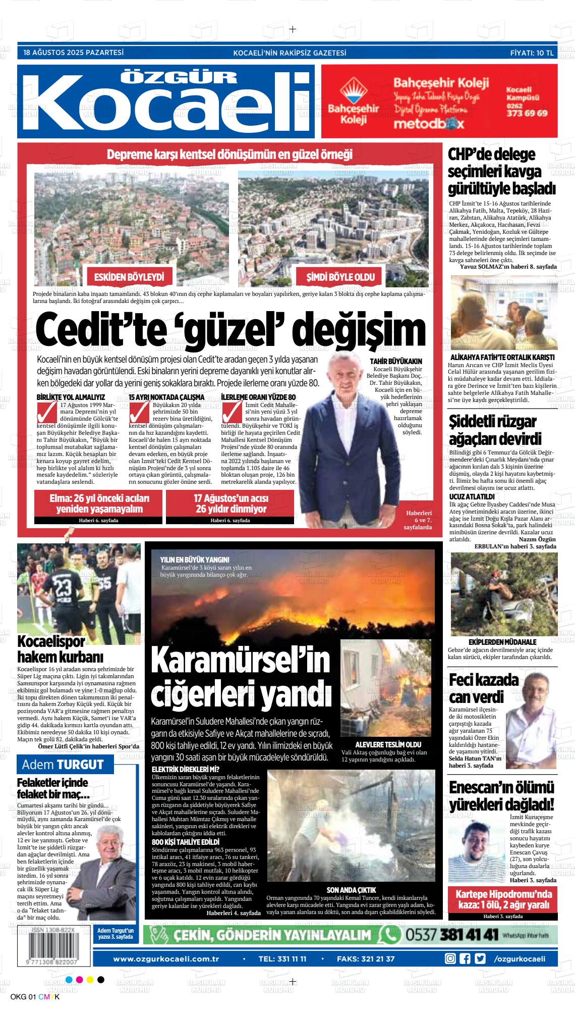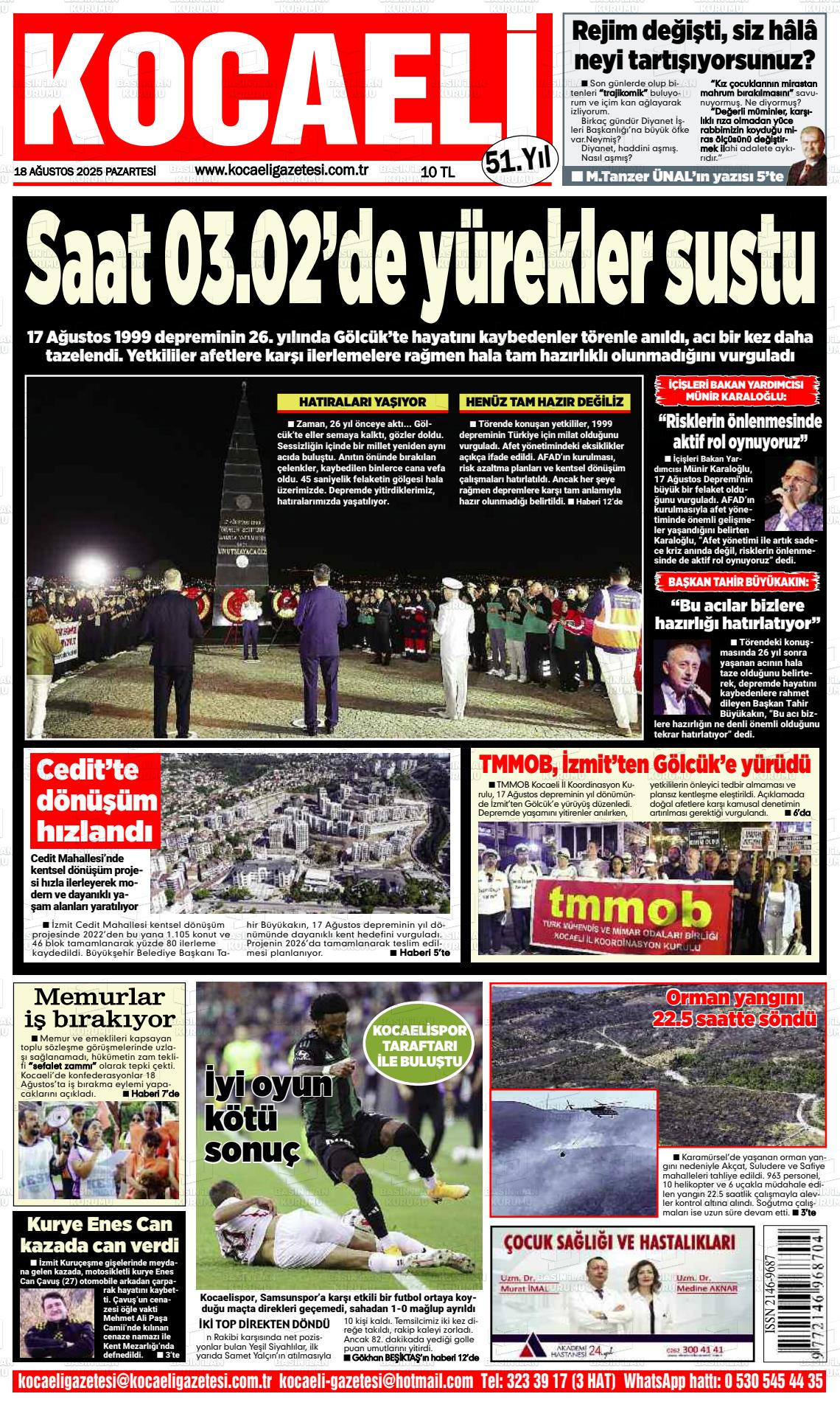 Kocaelİ Yerel Gazeteleri 14 Aralık 2025, Pazar Günü Manşeti