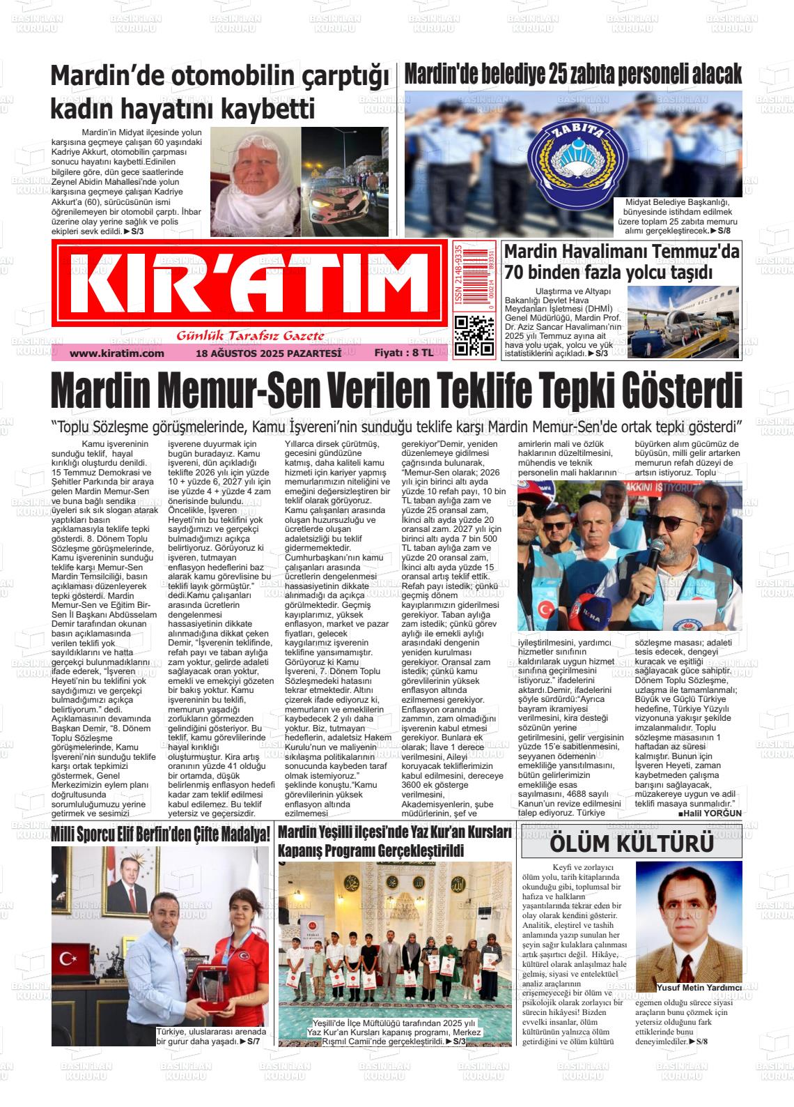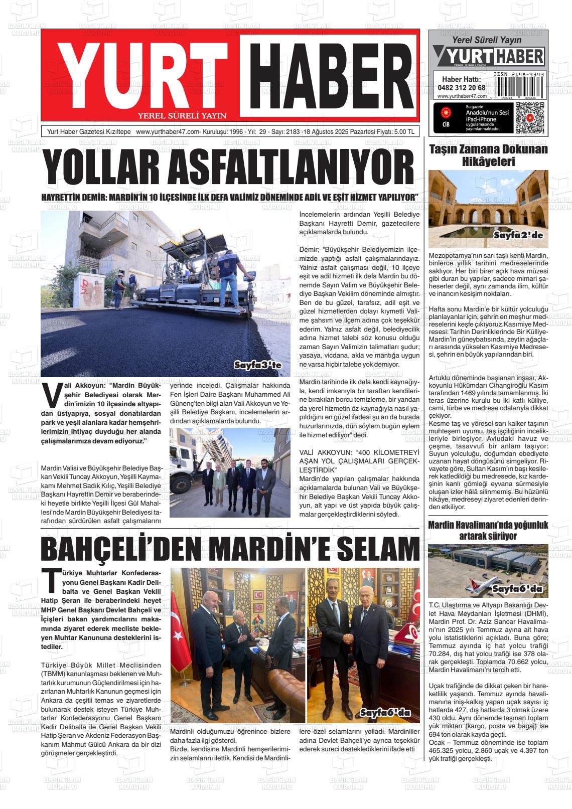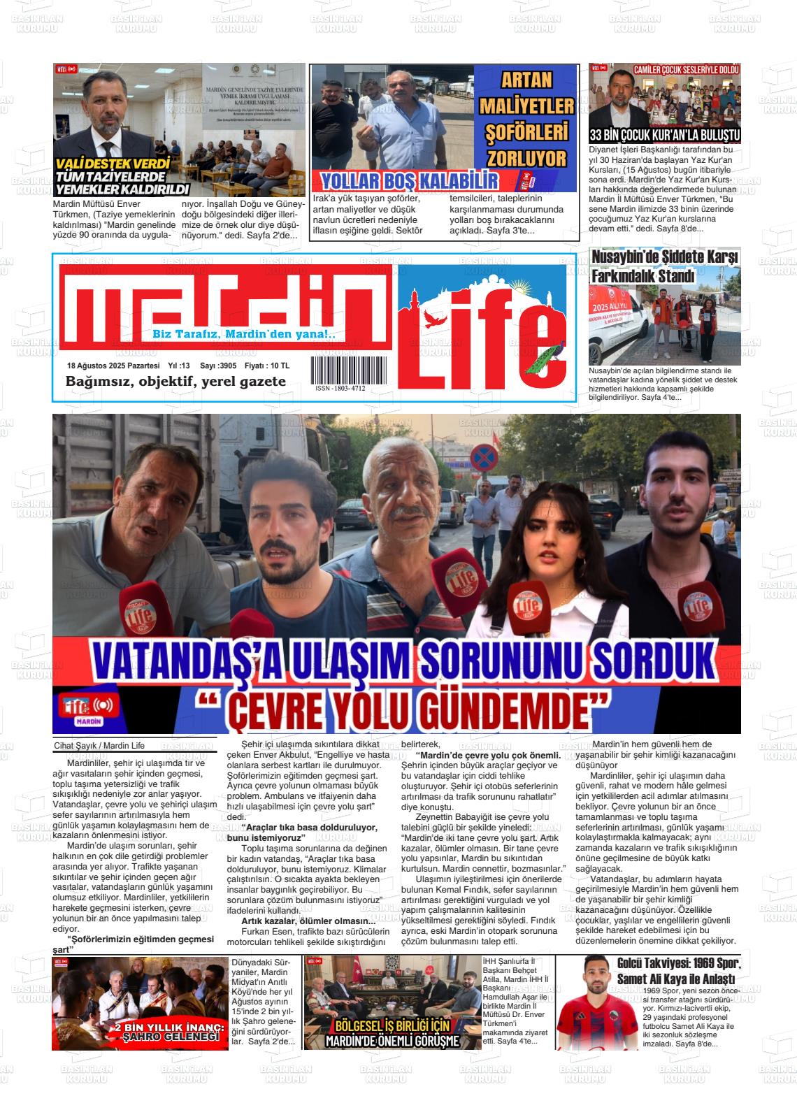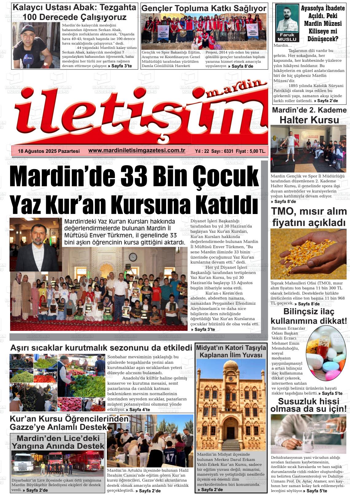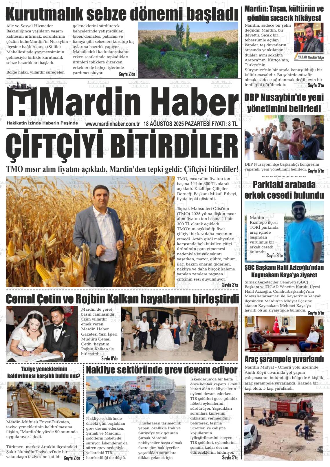 Mardİn Yerel Gazeteleri 14 Aralık 2025, Pazar Günü Manşeti