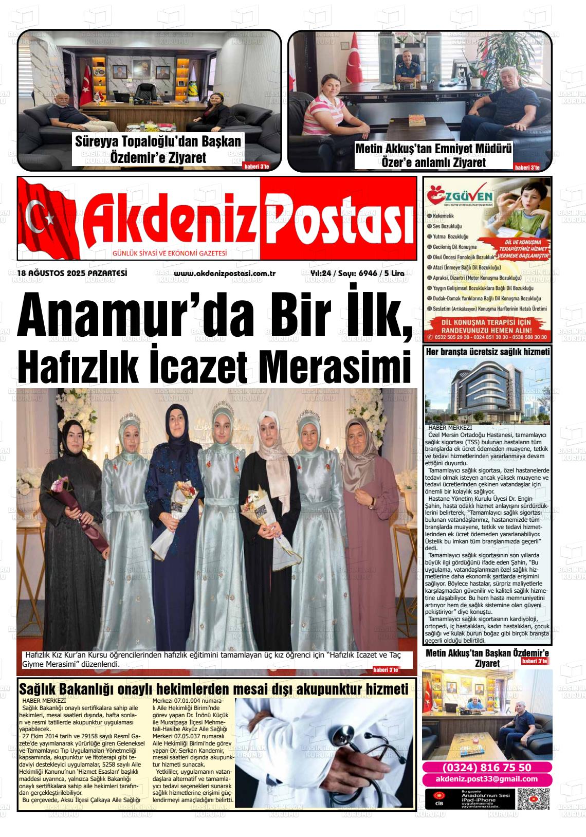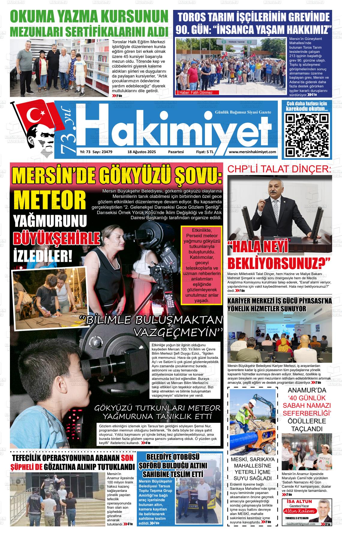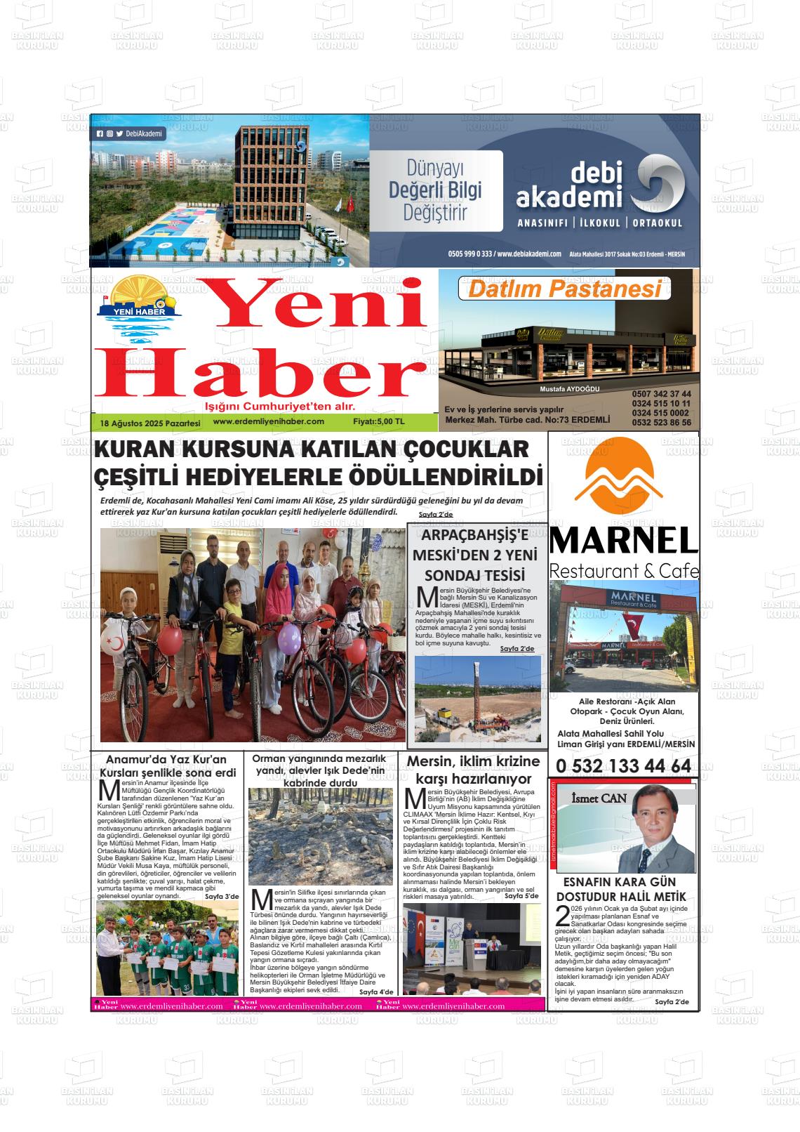 Mersİn Yerel Gazeteleri 14 Aralık 2025, Pazar Günü Manşeti