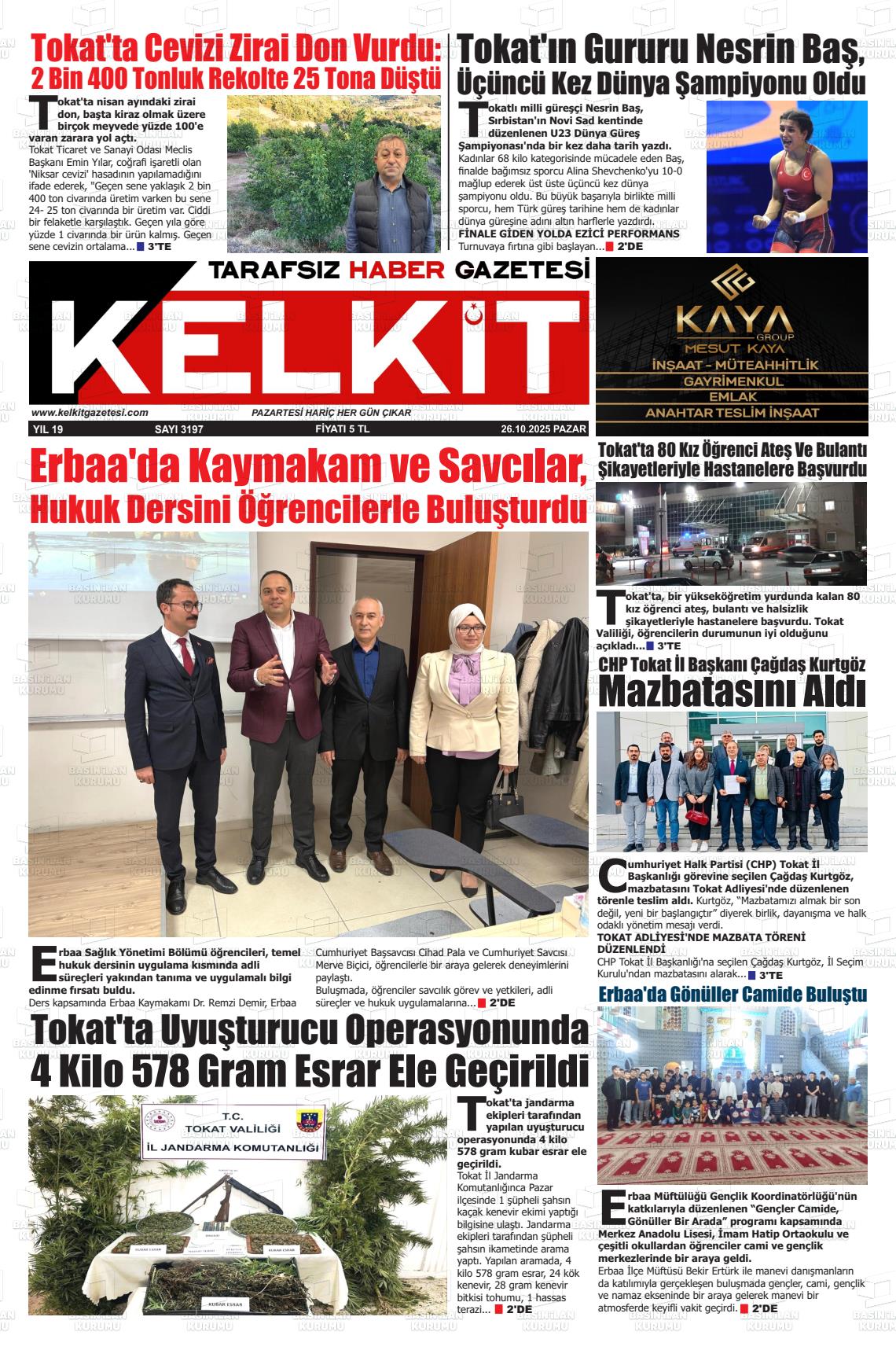 Tokat Yerel Gazeteleri 26 Ekim 2025, Pazar Günü Manşeti