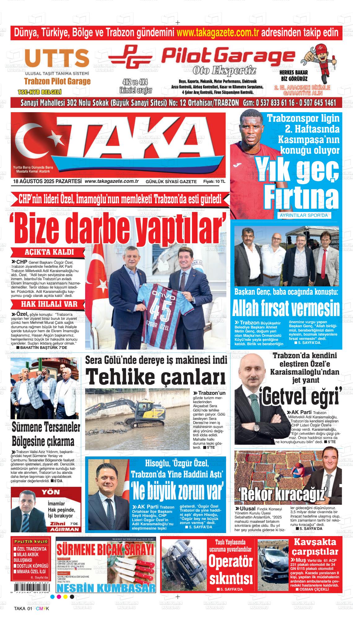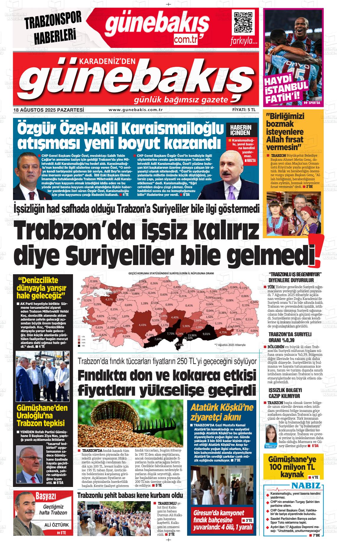 Trabzon Yerel Gazeteleri 26 Ekim 2025, Pazar Günü Manşeti