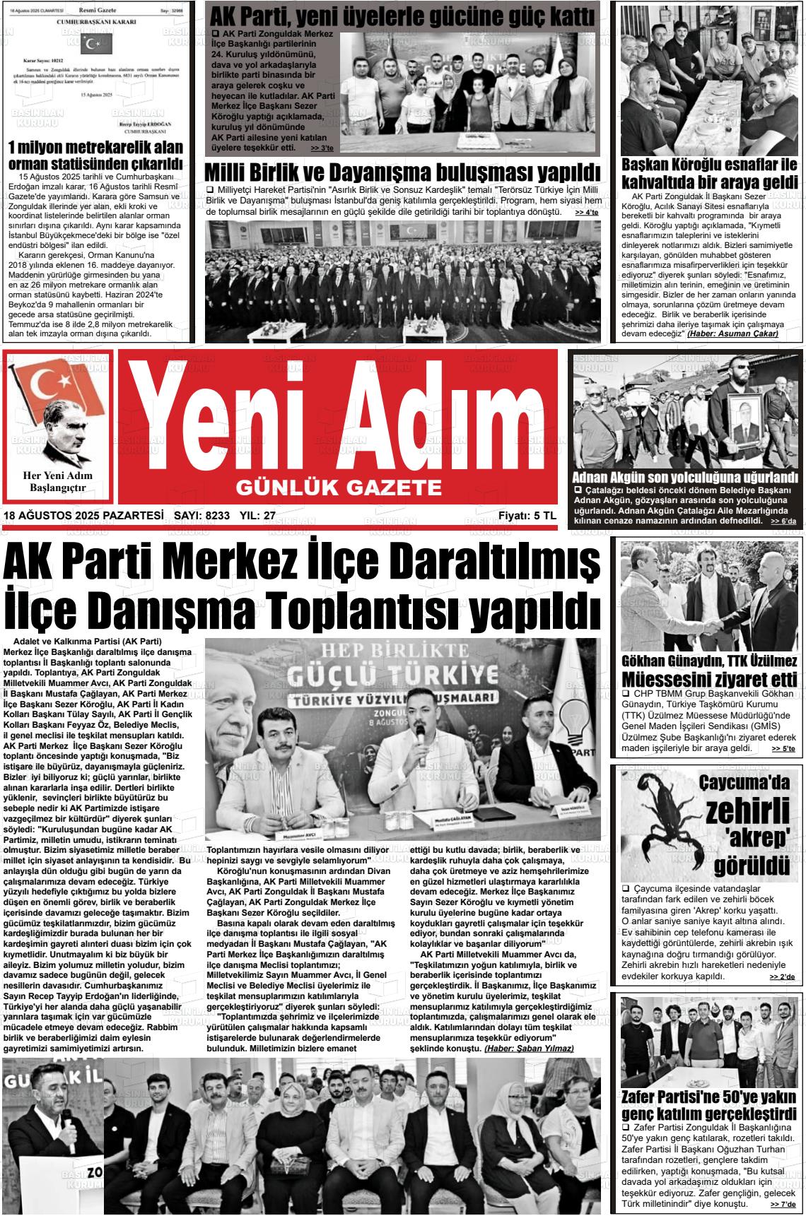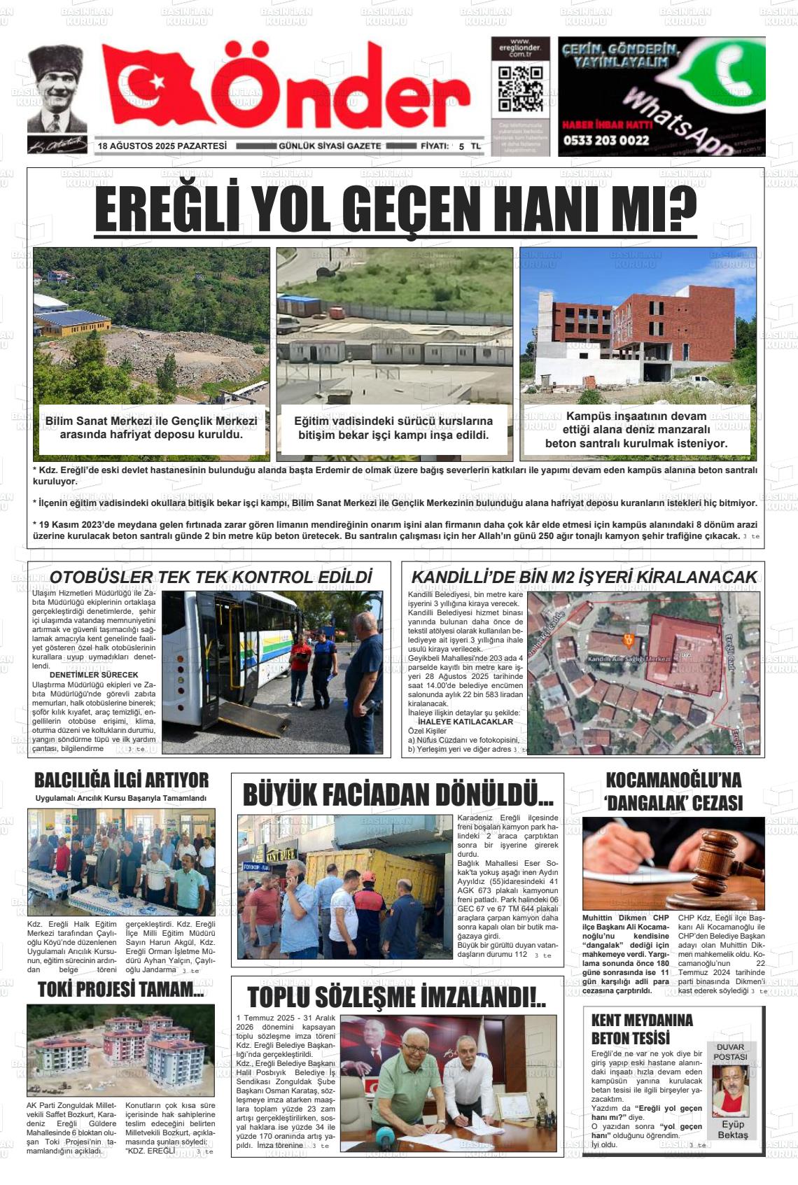 Zonguldak Yerel Gazeteleri 14 Aralık 2025, Pazar Günü Manşeti
